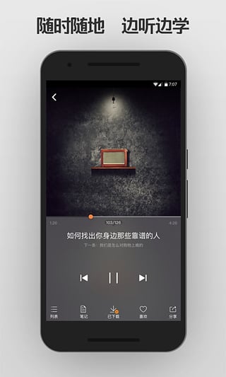 3、语音播放的同时,我们可以点击小节进入看文稿,有可能有一些文稿会有图哦,图中也是可以学习到不少东西的。如果喜欢这小节的内容,可以点击心图标就可以收藏文章。