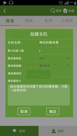 1、[手机建服]-您可以和您的小伙伴在任意有网络的地方用自己的手机创建服务器一起游戏,再也不需要花额外的金钱去租用服务器。