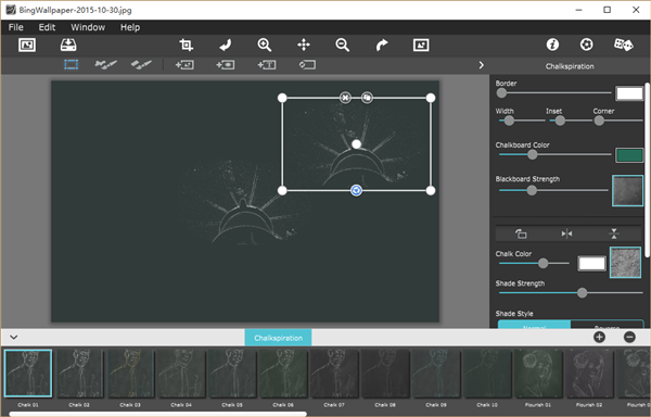 Chalkspiration开始通过自动转换您的图像垩白轮廓与遮光然后。允许你从包括一夜暴富,横幅,装饰和字体库将物体。