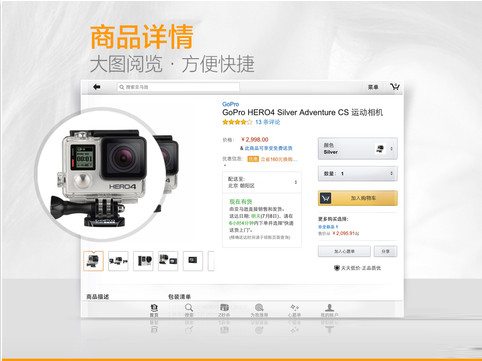 快速搜索,获得产品详情、阅读评论并购买 Amazon.cn 和其他商家提供的数千万产品。通过您的现有亚马逊帐户登录,访问购物车,选择同样的支付、以及配送方式和订单查询服务。