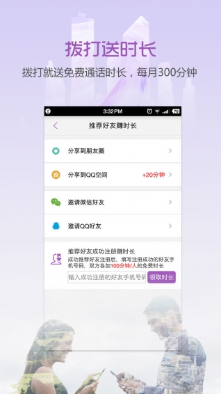 1、新增话费红包功能,邀请好友注册一起发红包,超多时长任你赚!