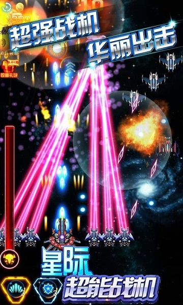 《星际超能战机》是一款高品质紧张刺激的飞行射击游戏,《星际超能战机》操作简单手感爽快,轻松体验飞行乐趣,是射击类游戏爱好者不容错过的一款佳品。除了运用高超的闪避子弹技术来挑衅boss虐杀怪物,玩家还可以通过强化、进阶来快速提升战斗力,在数值上甩掉敌人两条街......犹豫什么呢,赶快加入吧!