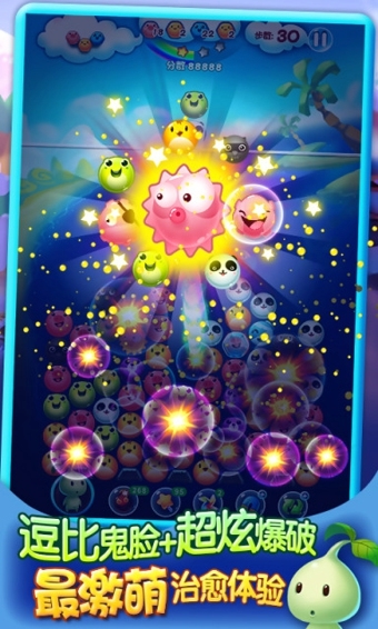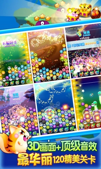 3D画面+激萌音效!4只神奇助战宠物,5个超炫消除道具,6只动物泡泡,120个精美关卡,让你视觉听觉同享超爽体验~