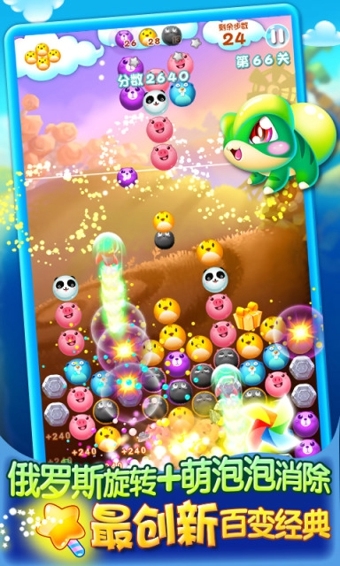 会卖萌的「俄罗斯泡泡」,2015年全宇宙最IN颜值爆表「创意三消游戏」!消除达人推荐,萌妹子最爱,还有全球排名挑战模式等你来战!小主们快来打泡泡吧!【游戏特点】