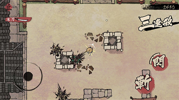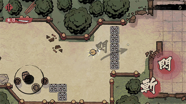2、其次,我们要清楚在操作界面中,玩家的技能基本情况。玩家仅有三个基础技能,除了最基础的移动技能外,还能向敌人挥刀,也可通过冲刺发动进攻,因此上手较为容易。尽管技能简单,但面对不同敌人,我们能使用多种兵器,像叶刀、飞刀、投雷、飞镖等,这能大幅提升我们清兵的速度与效率。