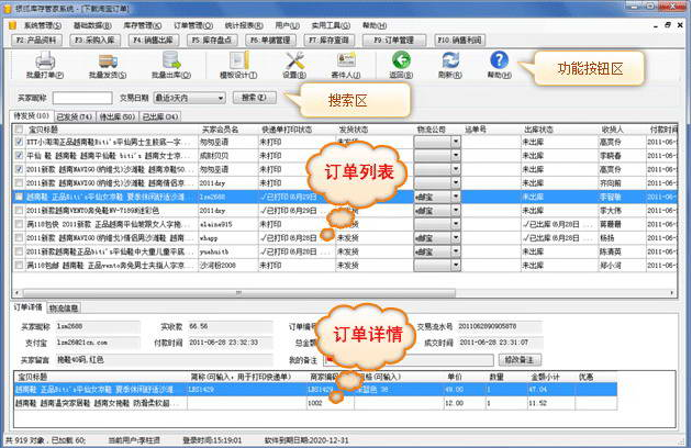 1、一键下载淘宝宝贝资料,上千宝贝也可以在数秒内完成建立库存,既准确又省时省力2、自动下载订单,支持按买家昵称,时间段查询,支持分销,代销,团购