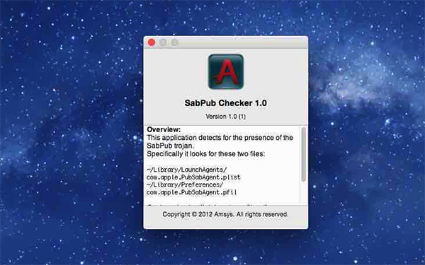 SabPubChecker帮你搜索你系统中的恶意软件SabPub,如果你的Mac电脑感染了SabPub可以将其找出来并且删除,删除完成后请重启你的电脑。