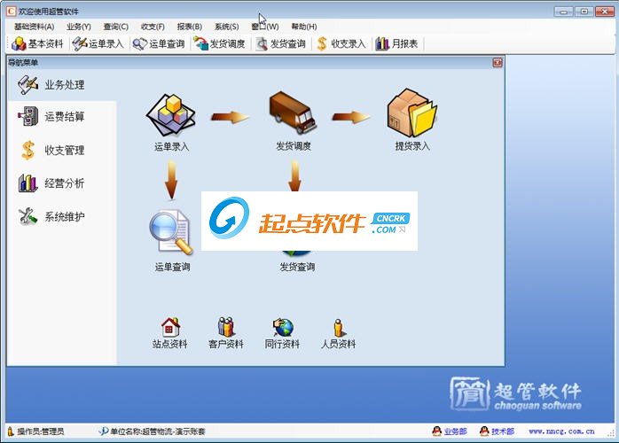 超管物流货运管理软件是专门为物流货运行业企业量身定做的信息化计算机管理软件系统。 本软件的设计理念:实用、简单、智能、快捷!