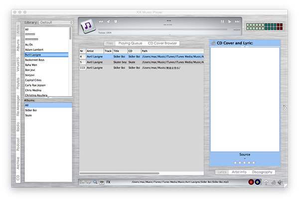 此外,XiX音乐播放器Mac版可以很容易地创建和维护自己的播放列表。此外,XiX音乐播放器Mac版提供歌词浏览器,搜索您正在收听的歌曲的歌词。如果CD封面是发现它也同时显示。