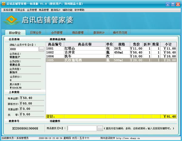 启讯店铺管家婆集POS销售、采购进货、会员管理于一身,系统界面简洁、优美,简单易用,系统不用培训即可上手使用,以及各种查询、统计、分析等紧密结合起来,能满足如销售,餐饮,美容,服务等行业进行会员制管理,会员卡管理,会员积分管理,会员消费管理的需求,科学的管理方法会给您带来无限的效益
