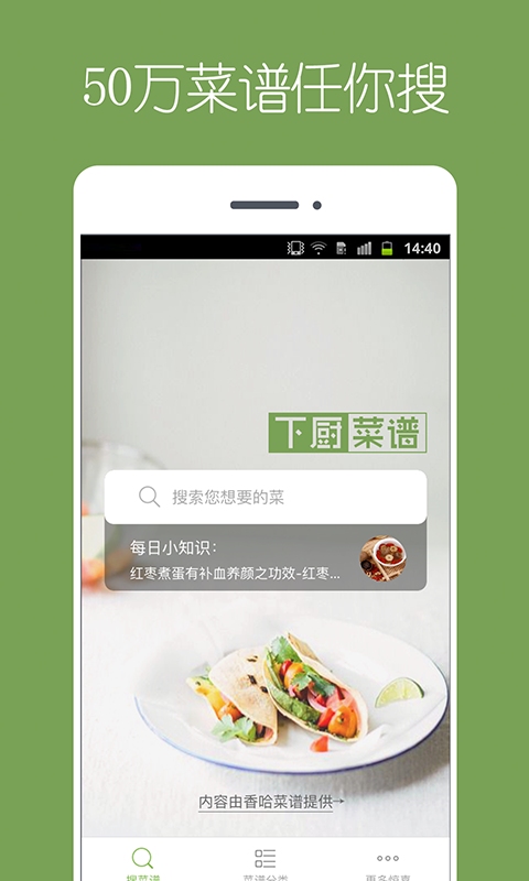 汇集海量菜谱,分类齐全,为您提供丰富的优质菜谱!
