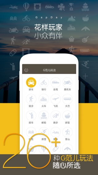 如果你是这样的人,在你的gapday,来GapDay,找那些有意思的旅伴,与你一同拼住民宿,骑行拼途,徒步川藏线,做背包的达客旅行,去西藏,做义工,拼车上珠峰,自驾去云南,在外拼饭,分享一块面包,搭车到大理,共同领略一段妙途,赶火车,玩滑板,露营,请潜水教练,苦游,穷游,短租,滑雪,登山,坐热气球,玩滑翔伞。我们把芜杂纷乱的结伴信息以你为中心组织在一起,把所有这样的人连在一起。我们鼓励你在马上就要出发的时候约伴,这样成功的机率最高,因为谁知道3个月之后会发生什么。