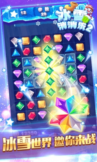 最高冷的三消游戏《冰雪消消乐2》来啦!萌萌的雪人与您一同畅游最美的冰雪世界,让您提前感受冬天的缕缕寒风。这里有多姿多彩的宝石、身临其境的寒冬背景,呆萌可爱的小雪人,炫酷的特效画面,简单易上手的操作,关卡多变的玩法,趣味十足。游戏操作简单只需要动动指尖,让三个及以上相同宝石组成一排或一列即可进行消除,每一关都有目标,达到目标成功通关即可解锁更多好玩关卡。【游戏特色】