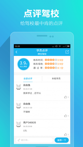 3.点评驾校:给驾校最中肯的点评,帮助其他学员找到更合适的驾校;