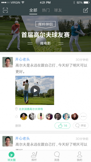 -分享到球友圈,与广大高尔夫球友交流学习,快速提升球技;