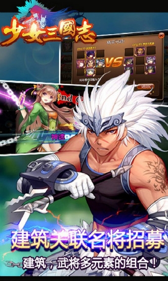《少女三国志》是一款三国为背景,穿越题材,动漫画风的卡牌游戏,是一款交互性较强的卡牌游戏。玩家将以主公的身份进入游戏,编写属于自己的穿越历史。游戏中独特的“征服战场”、“名人堂”、以及“寻宝”等玩法,能让各个玩家真真切切的体会到存在感以及刺激感,达到真真正正的在游戏中谱写历史。玩家还能够通过与其他玩家的配合来一同参与组队副本,与好友分享协作的乐趣,美丽的女版三国武将,丰富的兵种组合,以及即将开启的国战系统,技能连锁大爆发……我们期待您的加入!