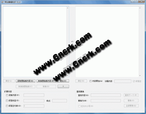 网站编辑有时需要从其它网站转载文章,最常见的操作便是选中,复制,粘贴,提交。而现在很多网站的后台均采用在线编辑器,编辑器会复制所选内容的样式或 HTML 元素,造成页面垃圾或影响页面布局和美观;最简单的方法就是打开记事本过滤一下。最主要的问题是有的页面文字排版很乱,如:段落后面没空行的、太多空段落的,段首没空格或段后太多多余空格的等等,这些问题对页面都有造成一定的影响,碰到很长的文章时,处理这些文字排序操作将给编辑们带来不少手工劳动,严重影响工作效率。“网站编辑助手”主要目的便是针对对文字排版的自动化处理,使编辑们省去这些枯燥乏味的重复操作,让页面更加规范整洁