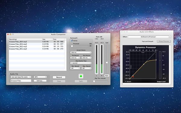 Audio Companion Mac版这是一款Mac平台的录音机软件,通过内置的声音输入或任何声音输入的设备连接来录制音乐到您的计算机 (如Griffin iMic USB 设备)。它也将采取行动作为一个正常的音频录音机或者自动拆分成单独的文件的每一首歌的那台录音机。这些文件可能会作为普通 AIFF 文件 (准备好刻录音频 CD) 保存或保存为 MP3 文件或 QuickTime 可以创建的任何文件格式。