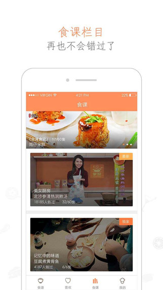 3.食课:每周三、周六最红美女主播。两岸四地,大江南北美食达人私厨美食倾囊相授。