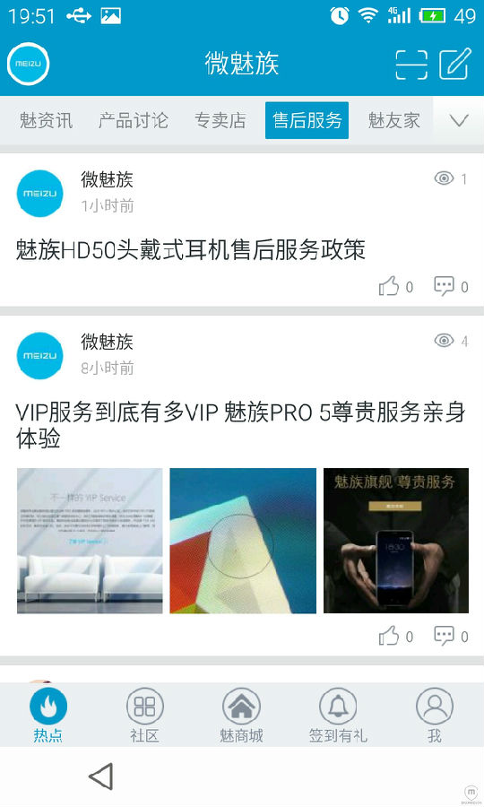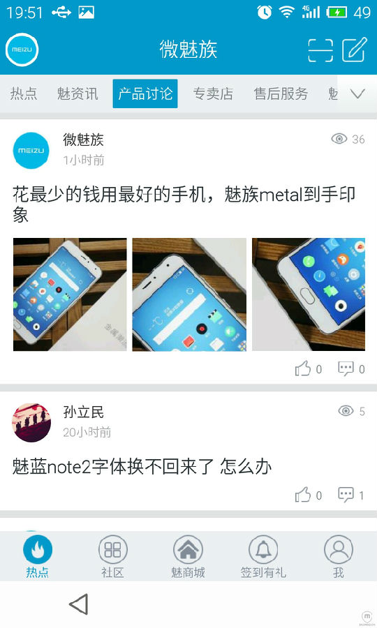 魅社区是魅族官方专门为魅族用户推出的一款产品资讯分享交流平台,平台目前已开通了魅资讯、产品讨论、专卖店、售后服务、魅友家等栏目,魅族用户们可以通过这款软件尽情发言,互相交流自己的用机心得,掌握魅族产品的第一手资料。