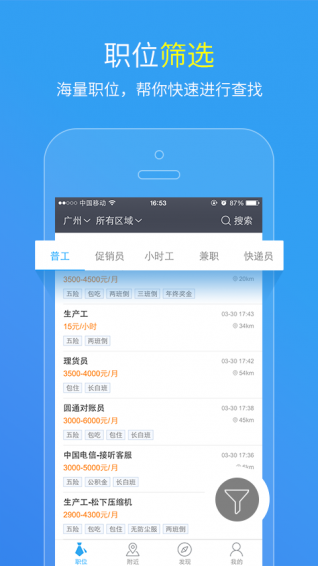 闪聘,最好的手机找工作APP。求职、打工、招聘,手机搞定。