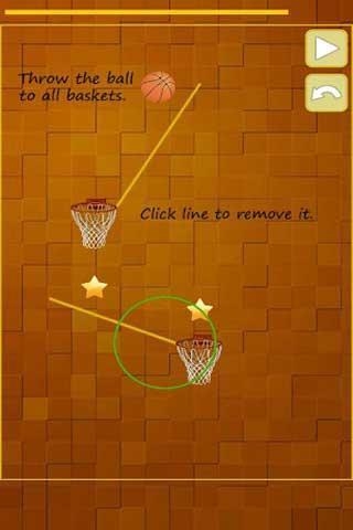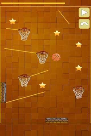 《画线投篮》划出精心组合的线条,让篮球通过所有的篮筐,点击线条即可删除,简单的图形,不一样的乐趣,每通过一个篮筐会得到一颗星,记住要尽量获得所有的星星!游戏还会出现许多障碍和通道,都需要玩家仔细思考,切记,线是有长度规定的,在屏幕上方显示。