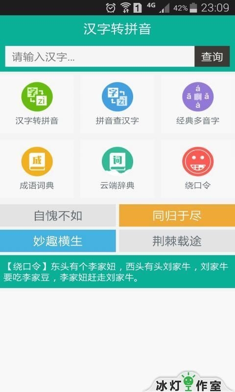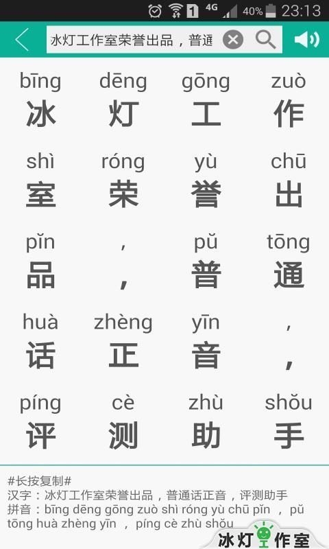 汉语转拼音(带音标)是一款支持汉语真人发音、普通话测试评分、字典解释、辞典查询、还内置成语词典、绕口令等等的普通话正音助手,乃学习常用必备工具软件。是您远离生僻字、学好一口标准普通话的好帮手。