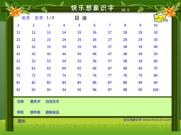 快乐想象识字法为了帮助人们克服识字的困难,就仿古人的这个思路,充分发挥汉字“以形表义”、极富联想性的独特优势(这是世界上其它现行文字都不具有的),但又不拘泥于六书的解释和造字的本义,而是紧扣现行的字形和字义,用四岁左右儿童都能听懂的话语和事理,将三千多个常用汉字中每个字的形义音三者间的关系进行多方联想、趣味想象,使三者重新合情合理地联系起来,这样几乎每个汉字都成为一个生动的情景,或是一个有趣的小故事,以形象思维为主的儿童看着新奇美妙、赏心悦目,心理上一下子就亲近和接受了汉字,并在思维里建立起牢固的联系。【软件特色】