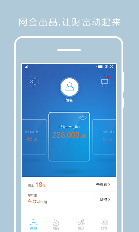 “网金社”致力于成为中国最大的服务于中高净值人群的互联网全球资产配置平台、领先的个人和企业互联网融资平台。满足用户不同生命周期的投资、融资需求。