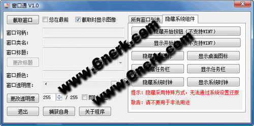 窗口通是一个便捷的窗口和Windows组件设置工具,支持设置透明度,更改标题,组件隐藏等窗口操作