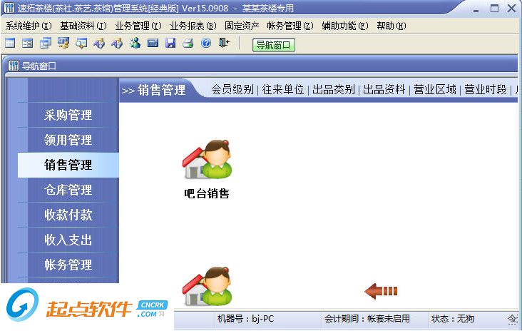 2、完善的前台营业收银流程:开台点菜、计价结帐、清台、搭台、转台、并台、外卖零售、退菜、赠菜、交班、接班等,是为茶楼行业度身定做的茶楼管理系统。