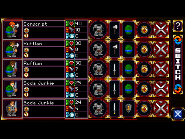 与传统RPG不同的是,这款游戏没有隆冗长的游戏剧情,游戏环绕着酒吧以及地下城而展开,玩法上则十分简单,玩家在游戏中可以使用金钱在酒吧雇佣强大的佣兵前往地下城冒险获取金币,通过冒险所获得金币又可以雇佣更加强大佣兵,直到挑战到地下城的最深处。不过地下城要是有那么容易打通就没有意思了,游戏中地下城的难度随着每10层有着质地提升,玩家想要通过这些难关就要依靠酒吧中的苏打,这些苏打可以给佣兵提供非常强大的BUFF效果,依靠这些BUFF才能克服重重难关。