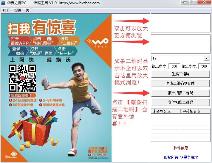 4、扫描二维码:可直接屏幕截图扫描,也可打开文件进行二维码扫描