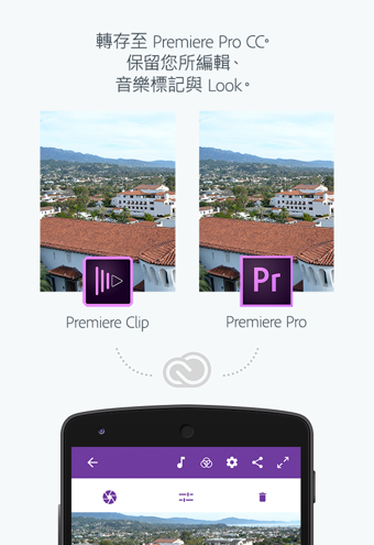 利用免费的影片编辑器PremiereClip,快捷而又有趣地建立可轻松分享的优质影片-或者轻松地在PremiereProCC中开启以便做进一步润色。近年来Adobe公司非常重视在Android平台的投入和发展,为此今天公司正式发布了面向Android平台的PremiereClip,这是首款登陆谷歌平台的视频编辑应用。同去年同期发布的iOS版本相同,这款应用上手简单功能强大,能够轻松裁剪片段、调整视觉并能嵌入背景音乐,而对于那些不需要编辑的视频片段,该应用还能自动将其拼接在一起,并配合你嵌入的背景音乐。「了解PremierePro的全部功能特性的通道。」–MelissaStoneburner,Examiner.com