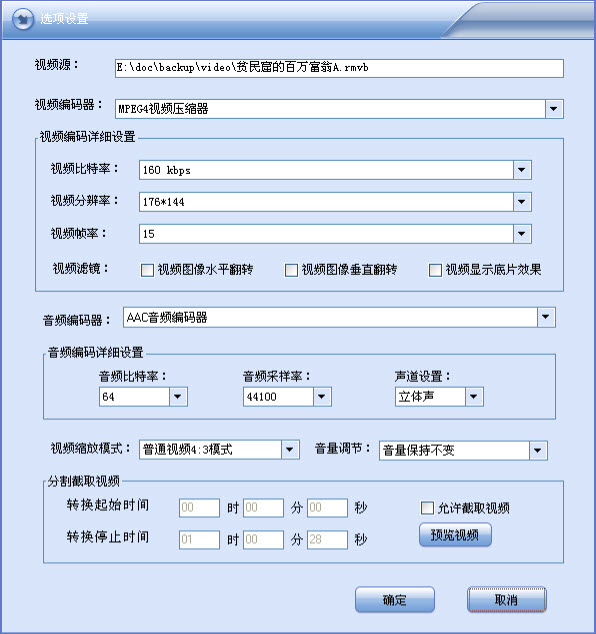 11.转换的视频可以在支持MP4的DVD碟机上播放;可以在支持3GP、MP4的手机上播放;