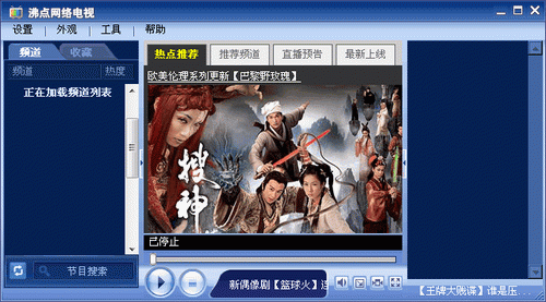 沸点网络电视 v3.2 简体中文官方安装版 沸点网络电视是一款免费、高速的网络电视软件,提供丰富的体育、娱乐、资讯类节目,让您在网络上不花钱就能收看到免费的电视节目。这款软件为搜狐旗下公司开发