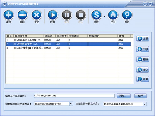 1.采用先进的编码解码技术,转换速度快,转换质量高。2.支持大量视频及音频文件的批量转换,提供转换后自动关机功能。