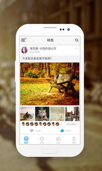校花驾到app是一款打造校园明日之星的选秀社交应用。用户可以通过聊天、浏览照片、投票、拉票等多种全新而有趣的方式,与明日的校园偶像近距离接触与互动。校花作为大学校园内亮丽的风景线,在这场线上全新体验的赛事中充分展现自己,积累人气,传播正能量,打造成为真正属于校园的明日偶像!