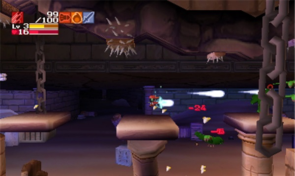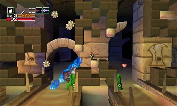《洞窟物语3D》游戏性依旧令人沉醉。你会发现和原作相比游戏性方面几乎未有任何改动,而任何玩过原作的玩家都知道——这些是它非常出色的部分。原本是侧卷轴平台类动作游戏,现在则增加了3D的背景纵深,玩家使用各种武器帮助自己的角色在一个又一个区域中前进,一点又一点的揭开剧情。