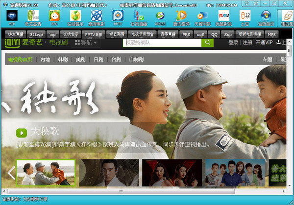 渝西网视稳定高效的系统内核,聚合PPS、PPTV、QQlive、uusee、CCTV、皮皮、沸点等主流14种网络电视软件,包含丰富的视频电影、电视资源,并有实时更新的体育直播节目,保证用户能够更加流畅的收看高清晰视频内容。软件操作简单,同时汇集了目前人气最高的视频站点(56.com,6.cn,tudou.com,新浪,优酷,酷6等),并在菜单收藏中收藏迷你网址导航,同时集成600多个电台以及在线听歌功能,渝西是目前资源最多的集成网络平台。我们始终坚持永远免费!【软件特点】