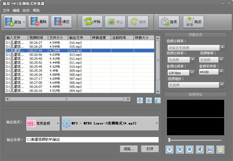 《新星MP3音频格式转换器》是一款功能强大、操作简单的MP3和WMA音频格式转换工具。拥有了本软件您就可以任意把各种流行的视频格式和音频格式转换为MP3格式和WMA格式。如果您需要WAV转MP3格式,WMA转MP3格式,RM转MP3格式,本软件可以轻松实现您的需求。同时本软件还是FLV/F4V转MP3转换器,MP3转WMA转换器,RM转WMA转换器可以说是一款多功能的音频转换工具。最为神奇的是本软件支持视频转换为MP3格式和WMA格式。比如您下载的电影是RM、RMVB、AVI需要转换为MP3,您的DVD光盘中的VOB,VCD中的DAT、MPG视频都可以转换为MP3和WMA保存。本软件从开发就针对用户转换的需求考虑,可以任意添加多少音频和视频转换,支持多线程批量转换,极大提高了转换的时间效率,还支持WAV、MP3、WMA、OGG、AAC、AC3、FLAC、AMR等音频相互间任意转换,本软件可以说是一款万能的MP3格式转换器和WMA格式转换器。