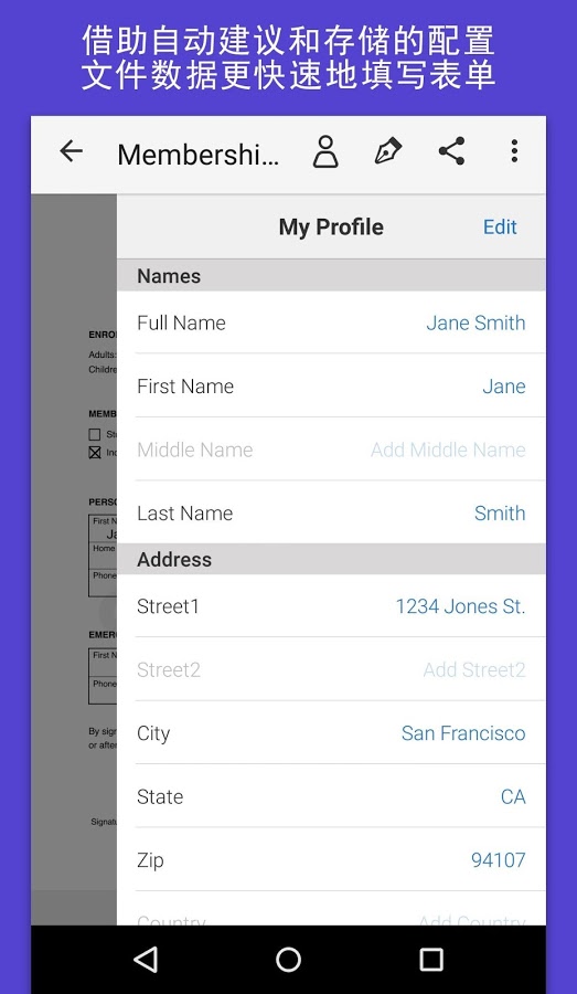 - 使用摄像头扫描纸质表单或打开电子邮件中的文件- 点击表单字段以输入文本或标记符号