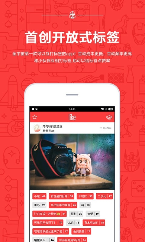 发现同类,互打标签,和懂你的人分享兴趣爱好like-用更简单的方式发现同类,让年轻人发现、坚持、实现兴趣的价值