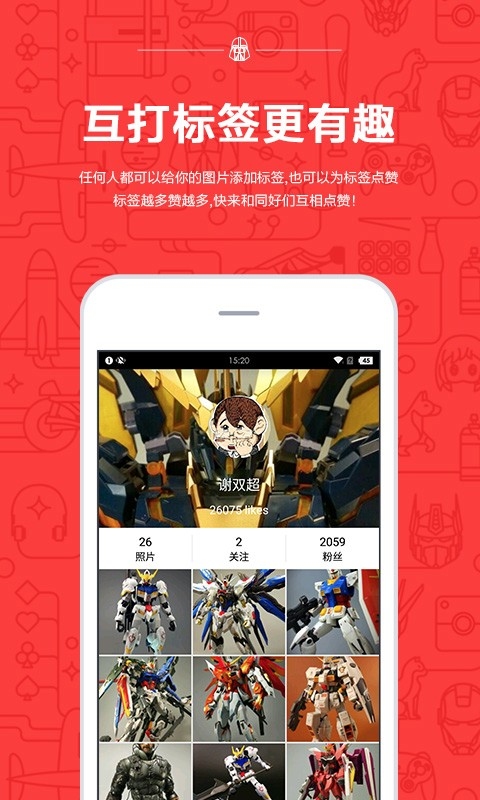 如果你是玩具收藏达人,发布照片并添加"手办"、"模型"、"高达"等相应标签,就可以与其他收藏爱好者共同分享收藏乐趣!