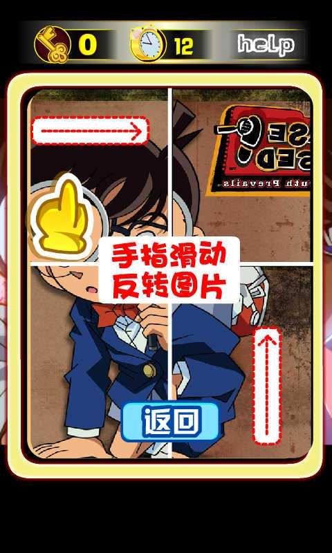 名侦探柯南翻图解密 v1.5 安卓版 名侦探柯南翻图解密是一款以人气动漫《名侦探柯南》为主题的休闲类拼图游戏,这款名侦探柯南解密游戏非常考验宝宝的空间感知能力,小朋友们可以通过还原移位的图片,来锻炼自己的空间想象能力,体验不一样的游戏乐趣。