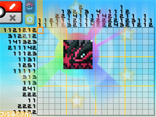 《口袋妖怪绘图方块》是由任天堂制作发行的一款休闲三消类游戏,《口袋妖怪绘图方块》是通过纵向数字作为提示进行绘图的游戏形式,让玩家绘制出各种口袋妖怪的图画,绘制完成后即可收集该妖怪,并且进行新一轮的解谜挑战。【软件特点】