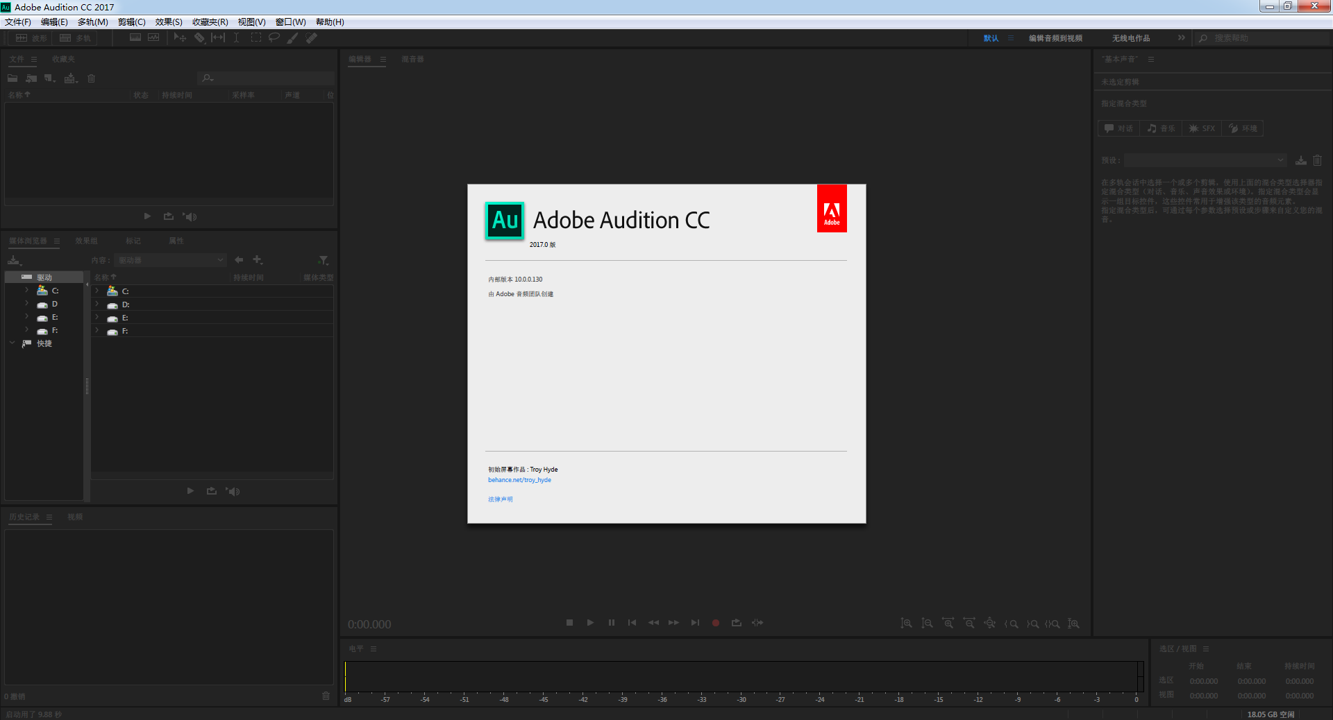 Adobe Audition cc2017把mp3变速?1.打开Adobe Audition软件