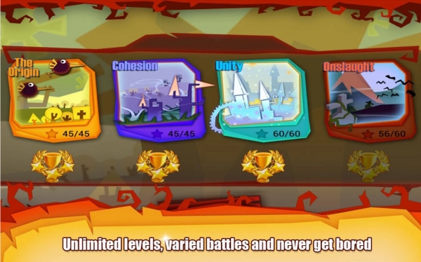 剪影大师是一款充满艺术色彩的策略类游戏,在太阳神的庇佑下,人们过着很安逸的生活,大脚魔王十分妒忌,于是派了邪恶魔团前来破坏村庄,玩家将扮演太阳神派出旗下神兵帮助村民,用手指随心勾画,就可创造出种类众多的勇敢士兵,与大魔王一决高下。