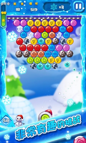 经典的泡泡射击玩法消除游戏每关都有妳需要通过妳智慧收集雪花