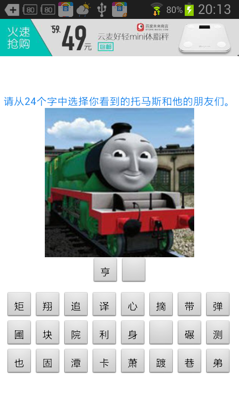 托马斯猜图游戏是一款非常受小朋友欢迎的猜图游戏,这款托马斯猜图不仅可以锻练我们的记忆力,还能锻练反应能力,在游戏中,玩家就是要通过看的图,在24个字中选择看到的人物名字,从中感受到游戏独特的趣味所在。